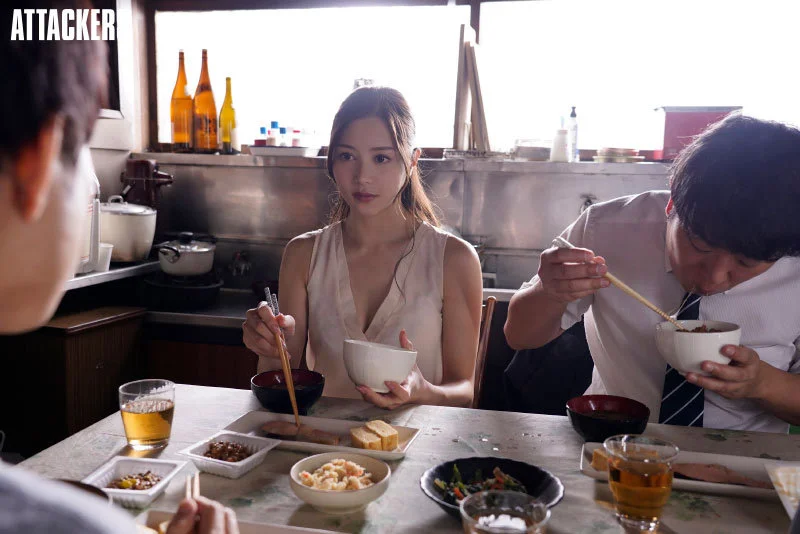 兄嫁の静香さん役の白峰ミウさん。手足が長く、すらっとした体形に透き通った肌。食事のシーンなのにすでに色気がムンムンです。